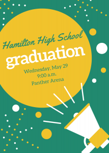 Graduating seniors should arrive in their graduation gown and cap by 8:00 a.m. at Panther Arena.